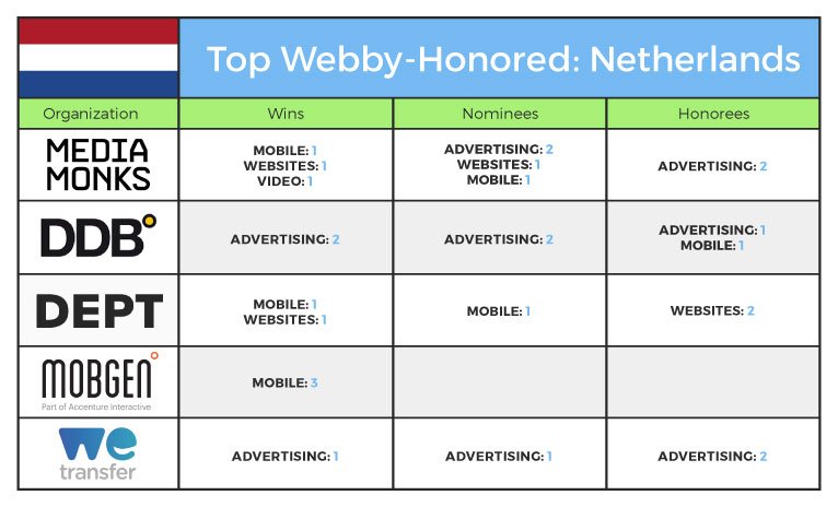 Founded in the US in 1996, The Webby Awards is now a truly global celebration of the best of the Internet. Last year alone saw many European companies leading the way in terms of the number of Webby honours, including organisations like MediaMonks (Netherlands), Hello Monday (Denmark), Denkwerk (Germany), and The Guardian (UK).
