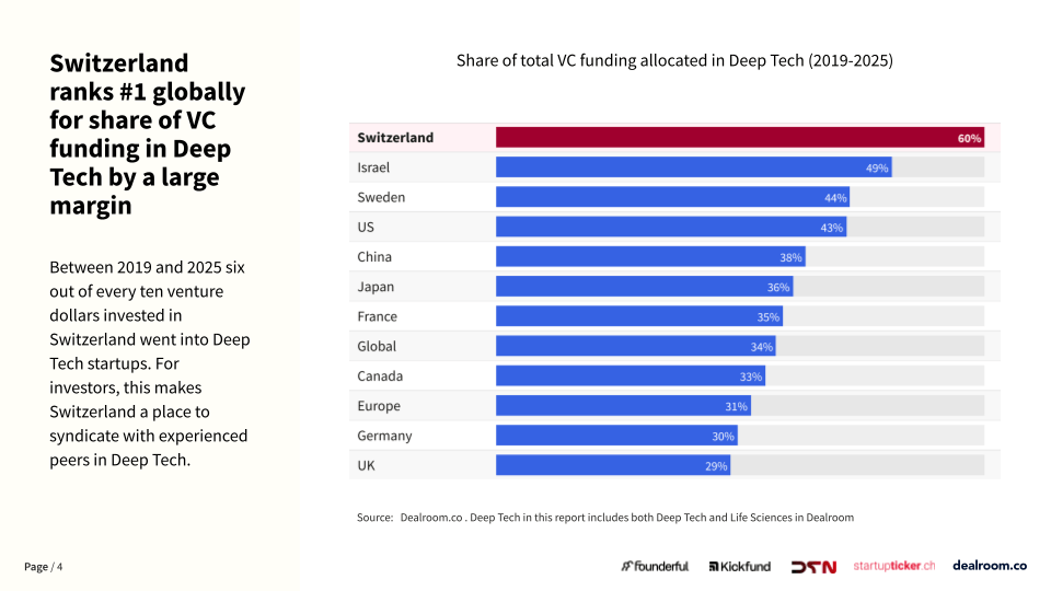 - From 2019 to 2025, Switzerland allocated 60 per cent of its total venture capital into deeptech — more than any other country globally.
