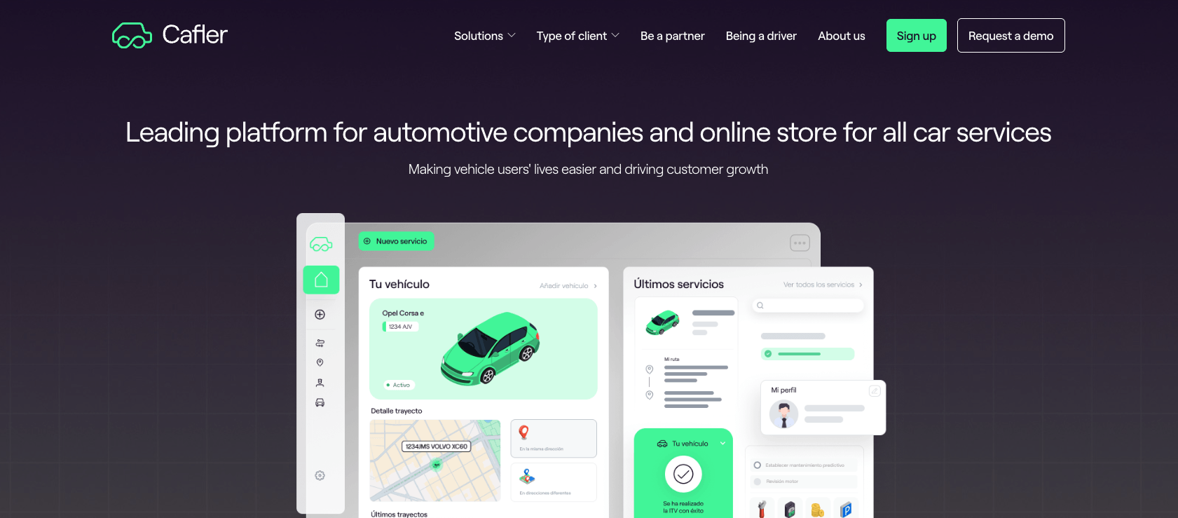 Cafler is a Barcelona-based platform that simplifies vehicle management for businesses and drivers by unifying automotive services (maintenance, tyres, washes, MOT/ITV, and admin paperwork) into one digital marketplace.