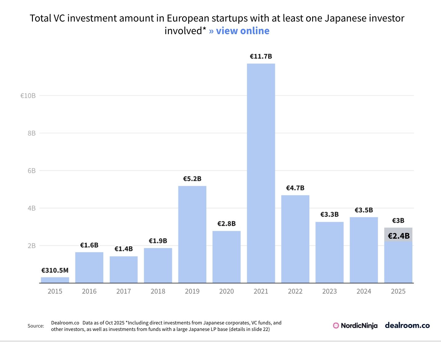 A new report by NordicNinja, Europe’s largest Japan-backed VC and backers of fast-growing tech companies including Bolt, Starship and Varjo, and Dealroom reveals that €33 billion of Japan-linked capital has flowed into Europe since 2019 as investors double down on the region’s deep tech advantage.