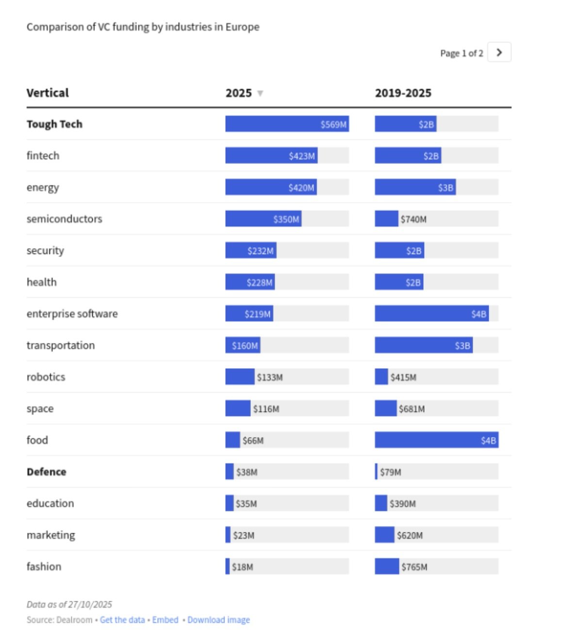 The steady climb since 2020 signals ecosystem maturity, where early-stage experimentation is giving way to scalable, capital-intensive breakthroughs in defence, autonomy, and deep industrial tech - proof that the region no longer only invents, but begins to industrialise innovation.