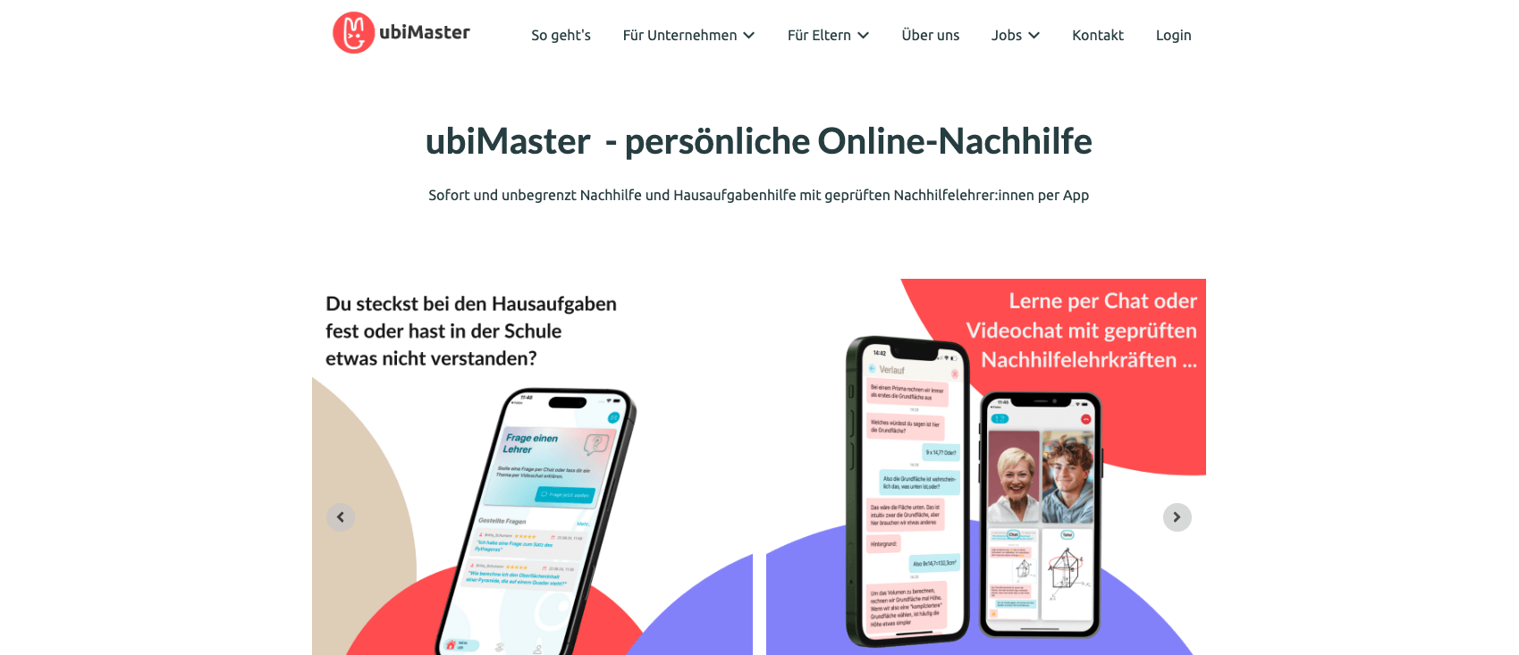 ubiMaster is a German company that offers on-demand, unlimited online tutoring and learning support to students via chat or video.