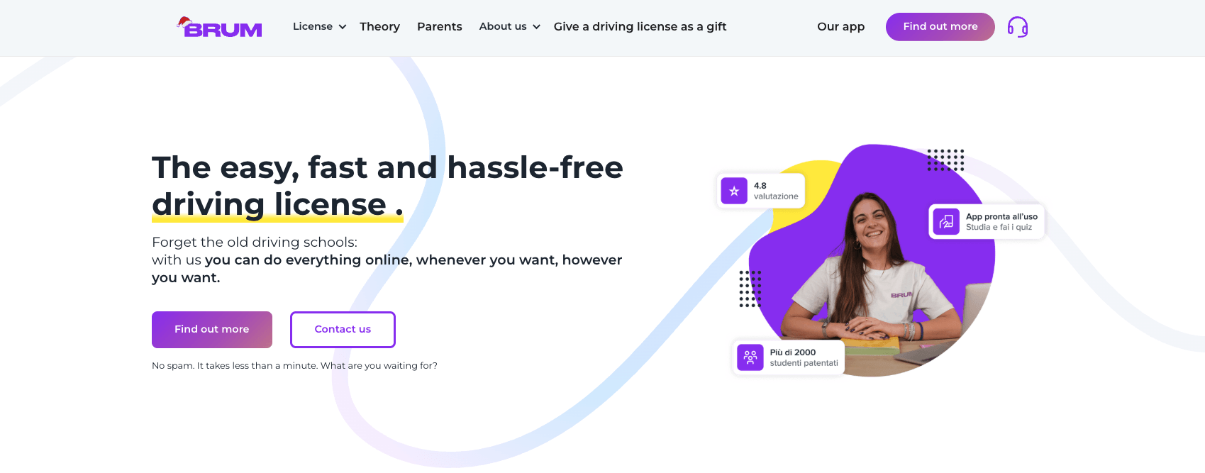 BRUM Patenti is an Italian digital driving school that modernises the licensing process by offering a fully online, flexible alternative to traditional driving schools.