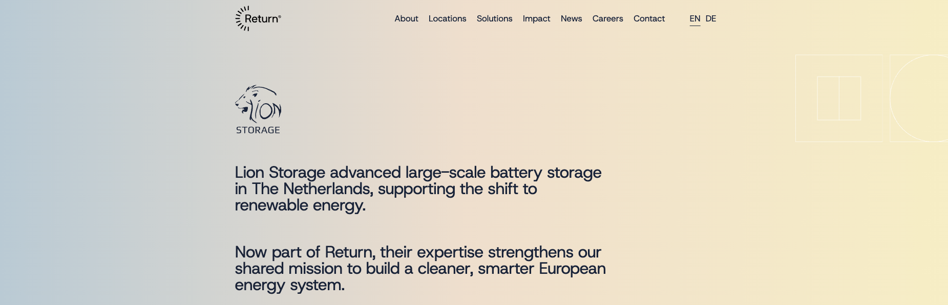 Lion Storage, part of Return and specialising in energy storage, focuses on the development and construction of large-scale battery energy storage systems directly connected to the high-voltage grid.
