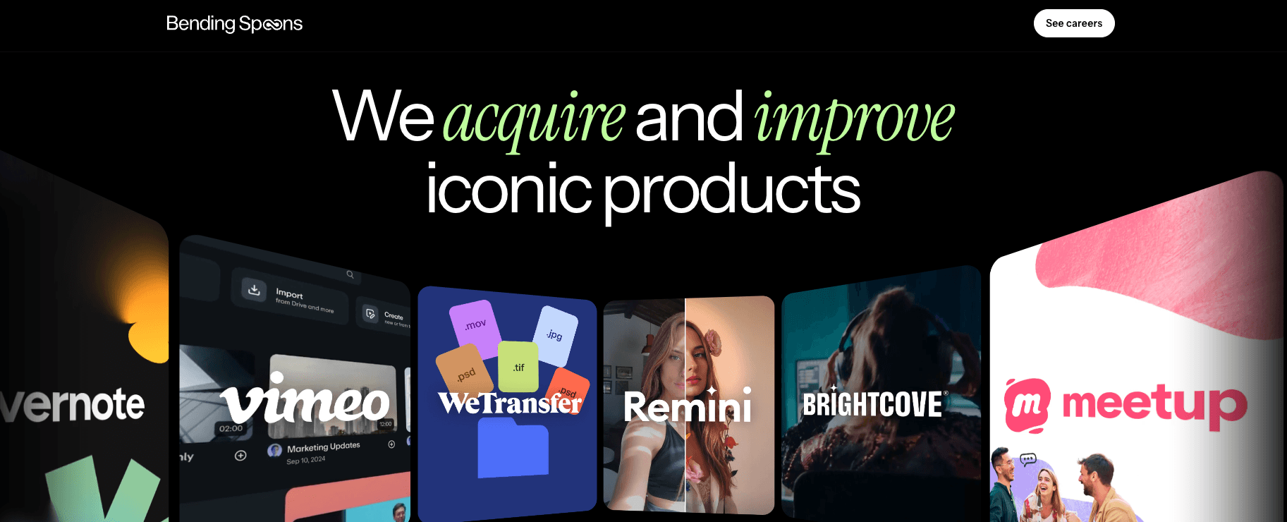 Bending Spoons is a technology company that acquires and operates established digital products, focusing on long-term ownership and performance improvement.