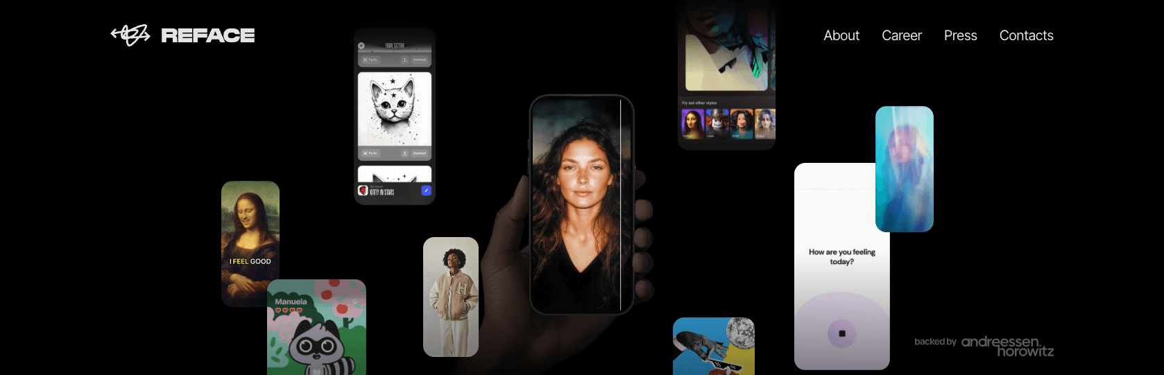 Reface is a Ukrainian AI company developing consumer applications for content creation, using generative AI to enable users to create and transform images and videos through features such as face swapping, animation, and style transfer.