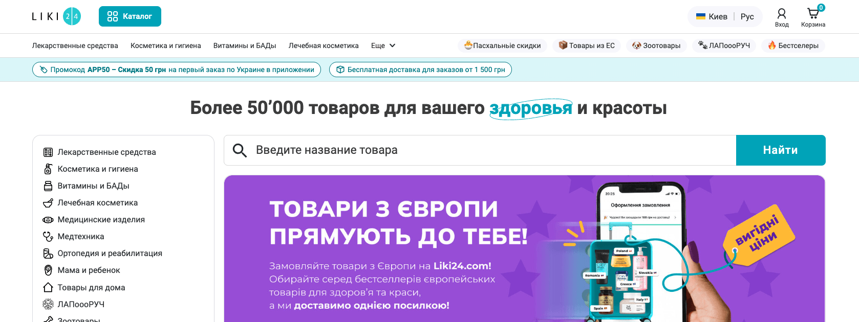Liki24 is a Ukraine-founded health and wellness marketplace that connects consumers with pharmacies, drugstores, and health product suppliers across Europe through a single platform.