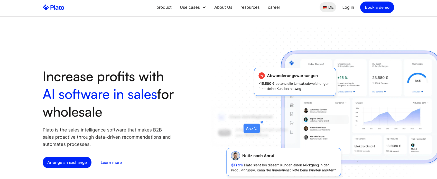 Plato is a Berlin-based AI software company that provides a sales intelligence and workflow automation platform designed for wholesale distributors, integrating directly with existing ERP systems to enhance sales processes.