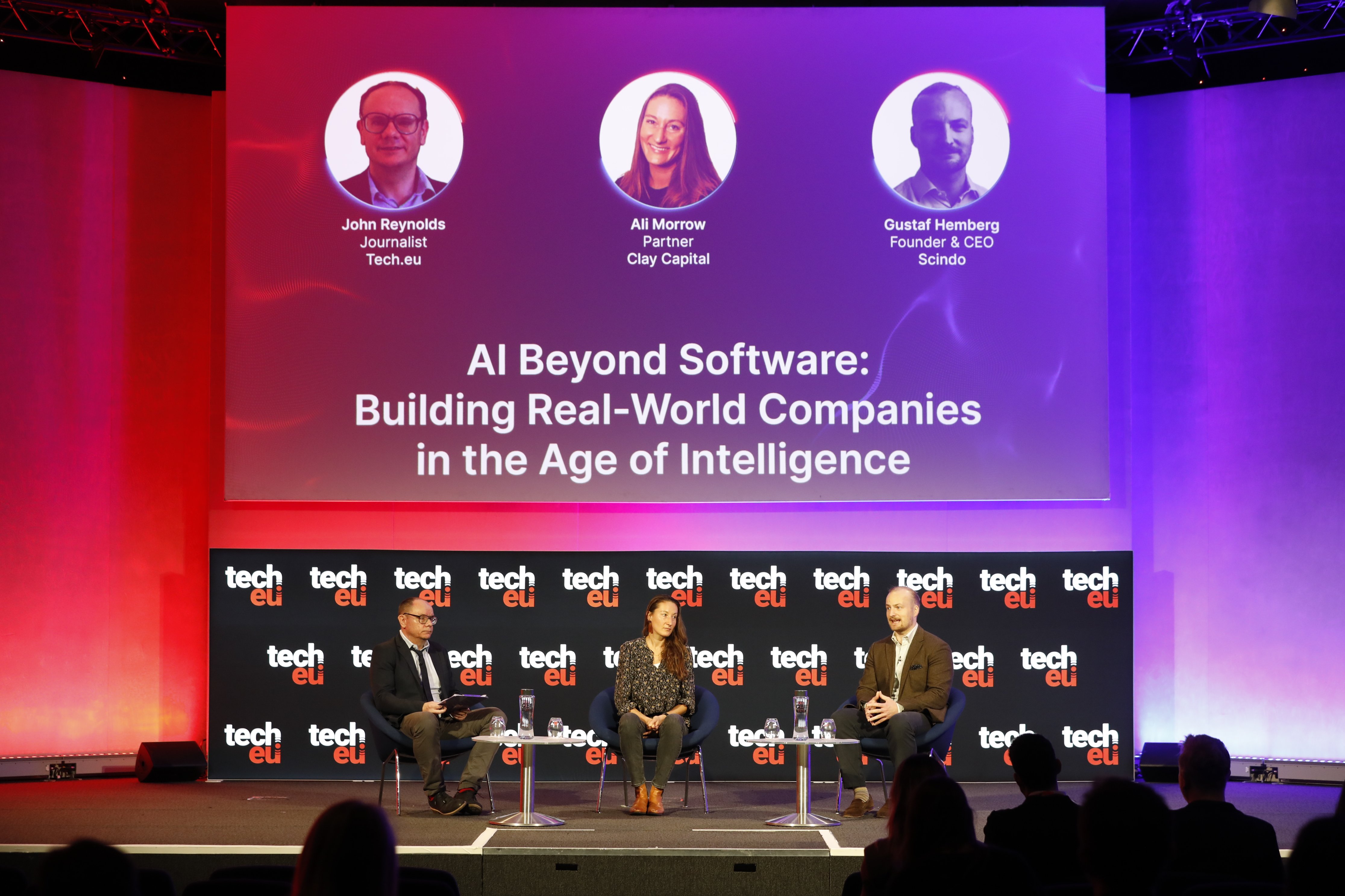 Ali Morrow (Clay Capital), Gustaf Hemberg (Scindo), and John Reynolds (Tech.eu) explored how companies can build defensible AI-driven businesses as the technology becomes increasingly commoditised.