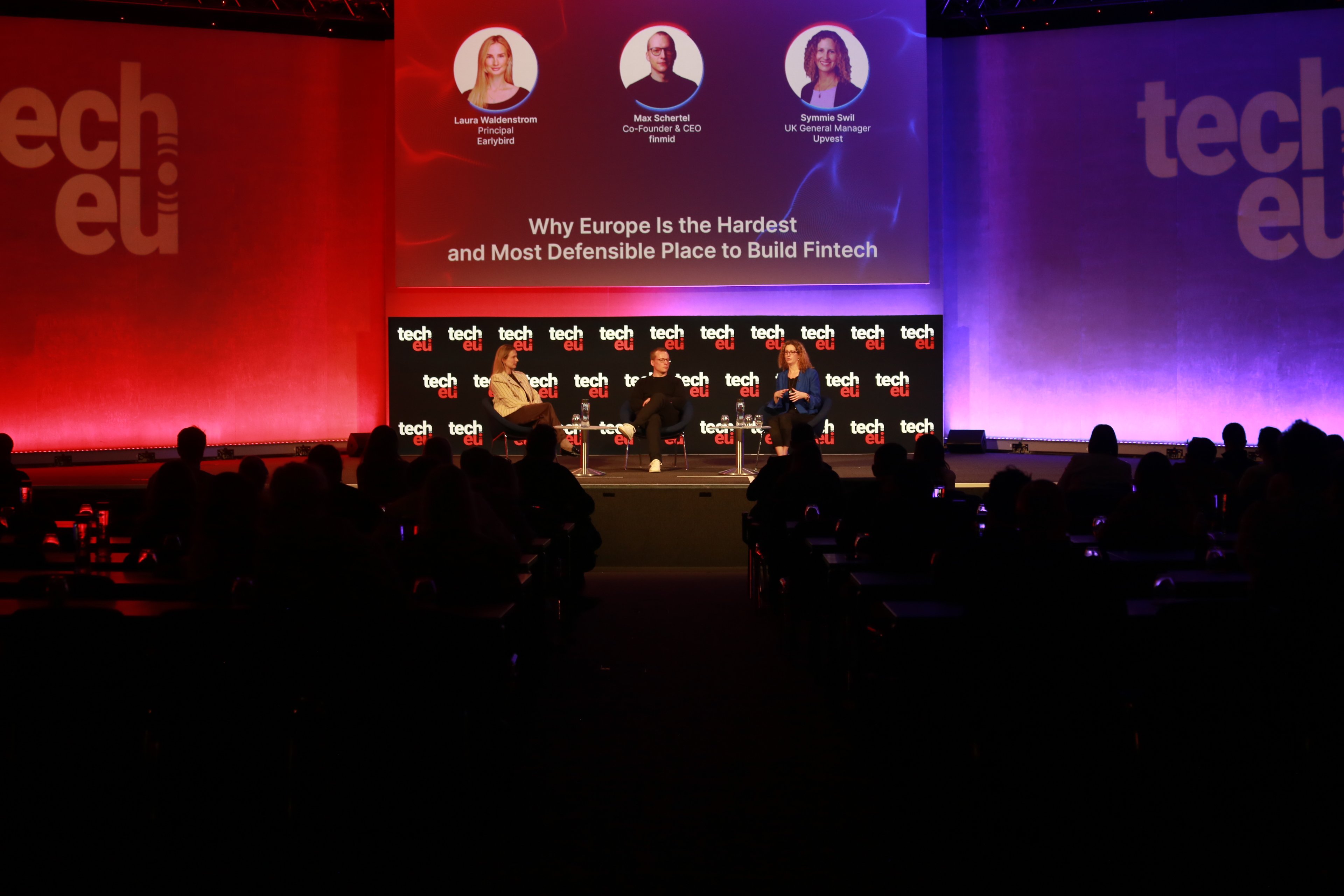 Laura Waldenstrom (Earlybird), Max Schertel (finmid), and Symmie Swil (Upvest) discussed the complexities and advantages of building fintech companies in Europe.