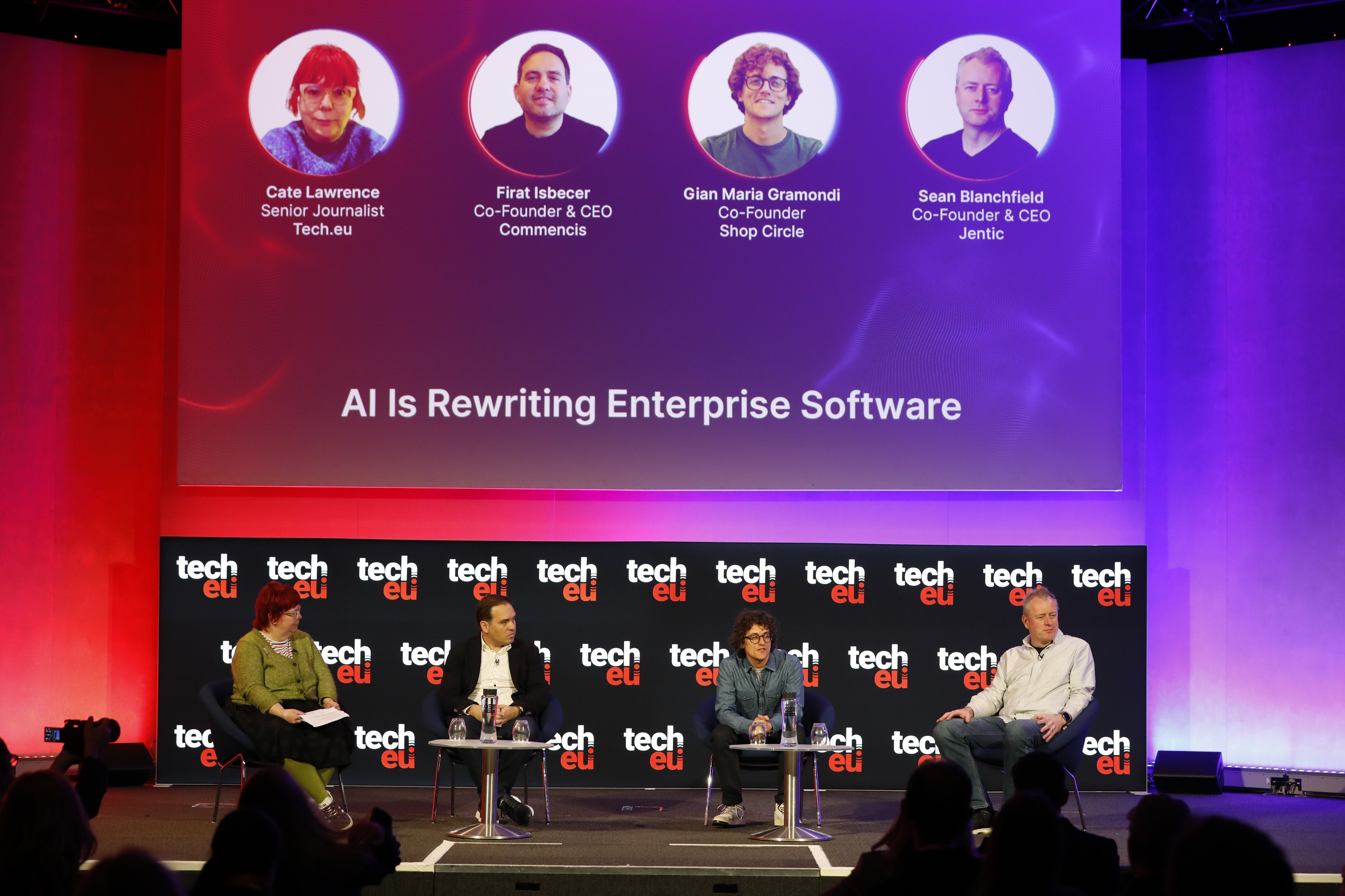 Cate Lawrence (Tech.eu), Firat Isbecer (Commencis), Gian Maria Gramondi (Shop Circle) and Sean Blanchfield (Jentic) examined how AI is transforming enterprise software and reshaping existing workflows.