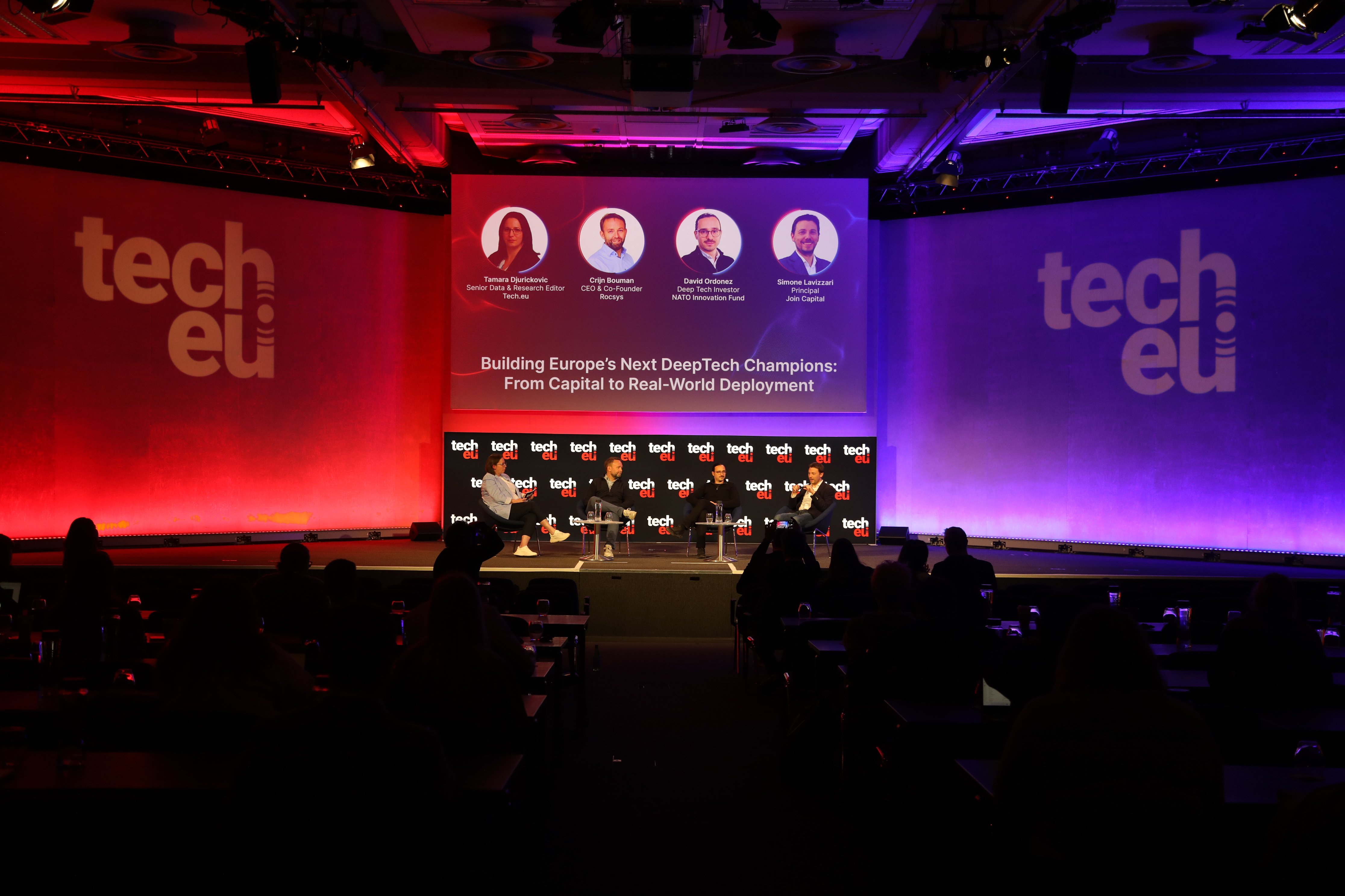 Crijn Bouman (Rocsys), David Ordonez (NATO Innovation Fund), Simone Lavizzari (Join Capital) and Tamara Djurickovic (Tech.eu) discussed how deeptech companies can scale from early-stage innovation to real-world deployment.