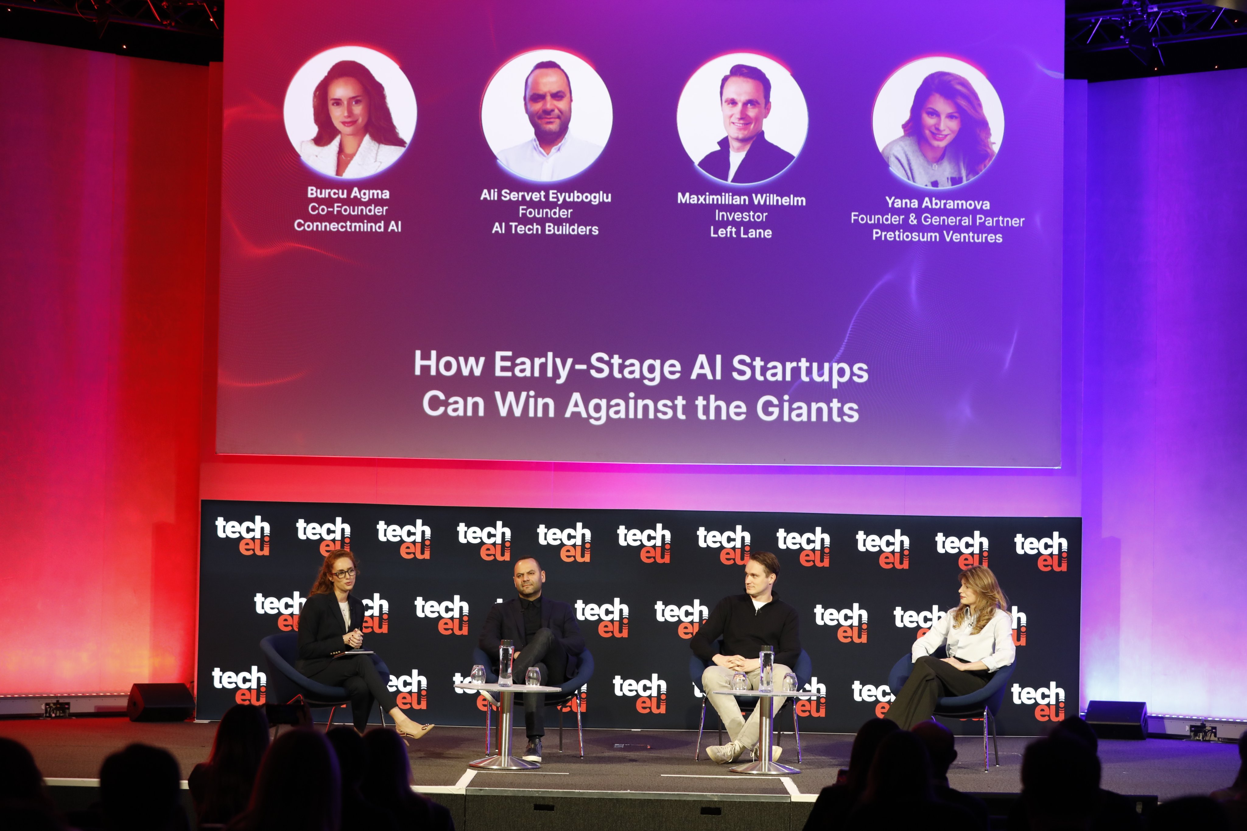 Ali Servet Eyuboglu (AI Tech Builders), Burcu Agma (Connectmind AI), Maximilian Wilhelm (Left Lane) and Yana Abramova (Pretiosum Ventures) discussed how early-stage startups can compete with large incumbents in the AI space.