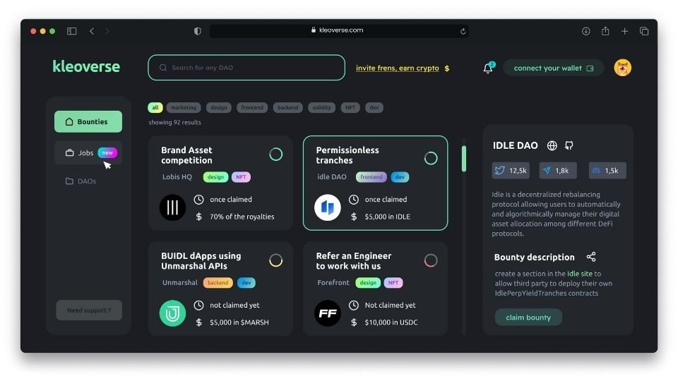 Currently, Kleoverse has over 100 DAOs on its platform and a few dozen projects hosted already by the time of its launch, with over 1,000 users signed up to its platform.