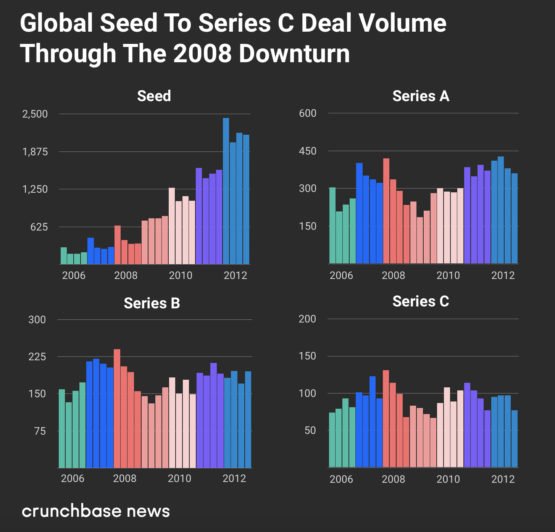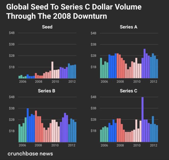 Below we look at the same time period from Crunchbase global data to review early-stage funding trends from 2006 to 2012.